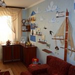 Занавеси темно-красных оттенков неплохо смотрятся и в интерьере, выполненном в «морском» стиле. К ним можно добавить украшения в виде канатиков, якорей и морских ракушек. В такую стилистику удачно впишутся и полосатые ткани.