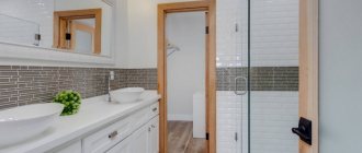 Расстояние от душевой кабины или ванны до раковины тоже можно сократить до 0.3 м, но не менее. От двери до «помывочной» — от 0.7 м. Размер душевой – не менее чем 90х90 см.