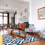 Tall vases and flowerpots on the living room floor, as well as original rugs near the sofa or fireplace, will look especially beautiful.