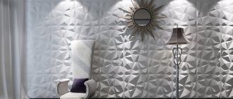 - A wall decorated in this way can participate in the zoning of a room and create a bright accent that attracts attention;