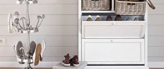 Balconies have a small area, so these rooms are used to the maximum. However, don't let it get messy. At the far end of the balcony you can make a storage unit with a sliding door. Shoes are stored in small cabinets. It wouldn’t hurt to make several wide shelves on the wall. The loggia should be finished in a similar way. Twists, fresh vegetables and fruits are usually placed on balconies. In winter, it is better to keep them in a relatively warm place. To do this, you can make a thermal box from boards, sheets of plywood and heat-insulating materials. There is a wide selection of thermal containers on sale in various price categories. On the balcony it is worth setting aside space for 1-2 tall narrow shelves. They are used to place flowerpots with plants, small decorative items, containers, work tools, workwear, and shoes.