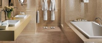 - Easy to care for and chemical resistance. The less dirty the surfaces in the bathroom are, the less often they will need to be washed. This requirement is met by materials with a finely porous structure, on which dirt does not linger. During washing, the coating should easily withstand contact with standard detergents and not deteriorate from other types of aggressive influences.