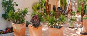 - when using blue or purple pots when creating a composition, we remember that the plants visually move into the background; if we take red and orange containers, the plant garden moves forward.