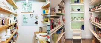 The pantry in the apartment can be used to store supplies, canned goods, sets of dishes, cleaning products and